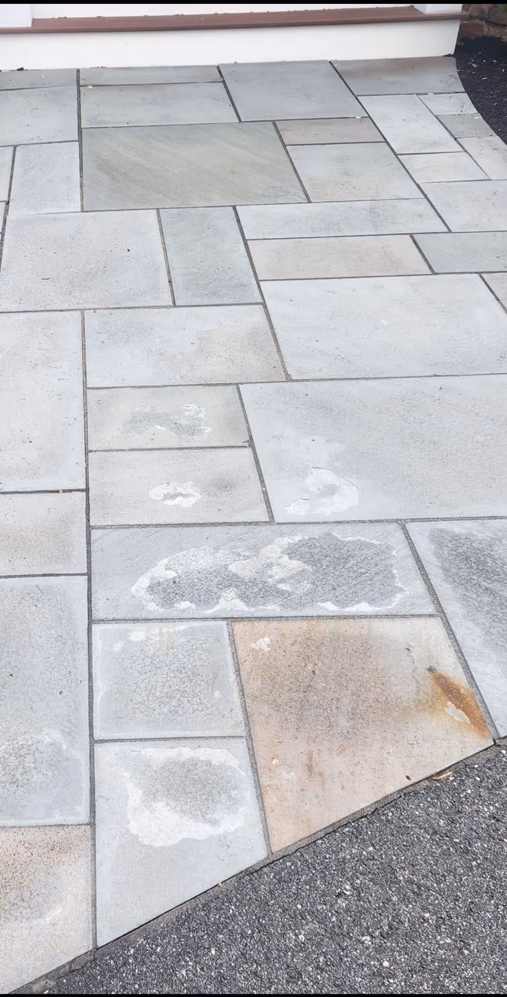 Natural stone, revered for its timeless beauty, is not without its flaws. The image shows a flaking natural stone surface, highlighting the inherent fragility and maintenance challenges associated with this material. As weather and time take their toll, natural stone can become a costly headache for property owners.